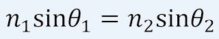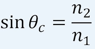 donde n1 y n2 son los índices de refracción de los medios 1 y 2 respectivamente. Si n1>n2, entonces θ2>θ1. Eso significa que cuando θ1 aumenta, θ2 llega a 90° antes que θ1. No hay transmisión al otro medio y la luz se refleja totalmente.